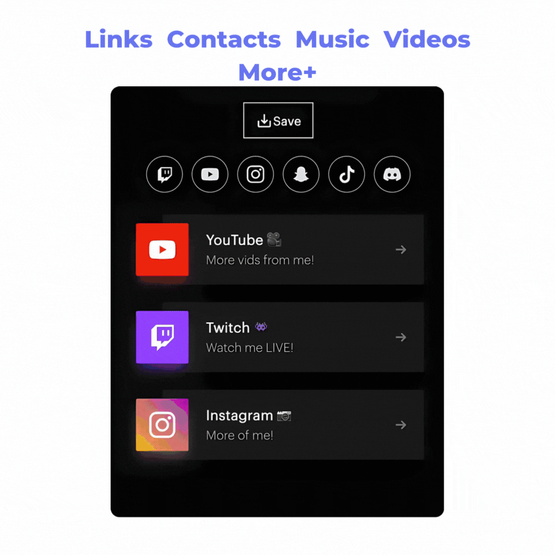 your links, social media, and more.